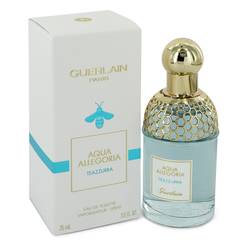 Aqua Allegoria Teazzurra Perfume by Guerlain, Aqua allegoria teazzurra, guerlain‰۪s 2015 addition to the aqua allegoria collection of fragrances for women, delivers highlights of green tea underscored by sparkling citrus notes of bergamot, yuzu, lemon and grapefruit for a light scent that refreshes and energizes during the heat of summer. Chamomile and jasmine bring a touch of sweetness to the fragrance, which finishes with warm and resonant base notes of musk and vanilla. This perfume comes in a striking blue bottle reminiscent of the sea shimmering under the sun, which is evident in the glittering of the decorative gold mesh and cap.